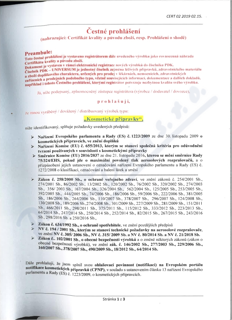 3 strany čestného prohlášení: strana 1, strana 2, strana 3,