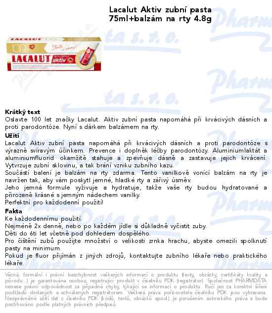 Lacalut Aktiv zubní pasta 75ml+balzám na rty 4.8g