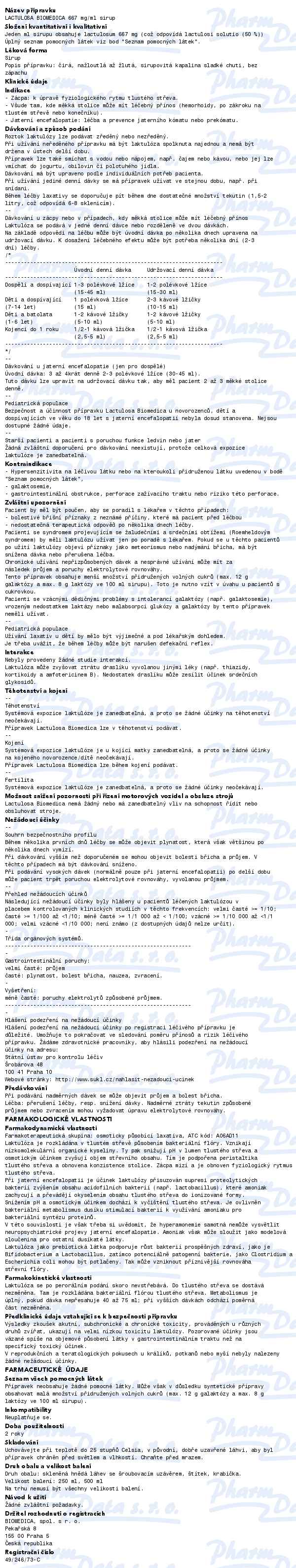 Lactulosa Biomedica 667mg/ml sir.250ml