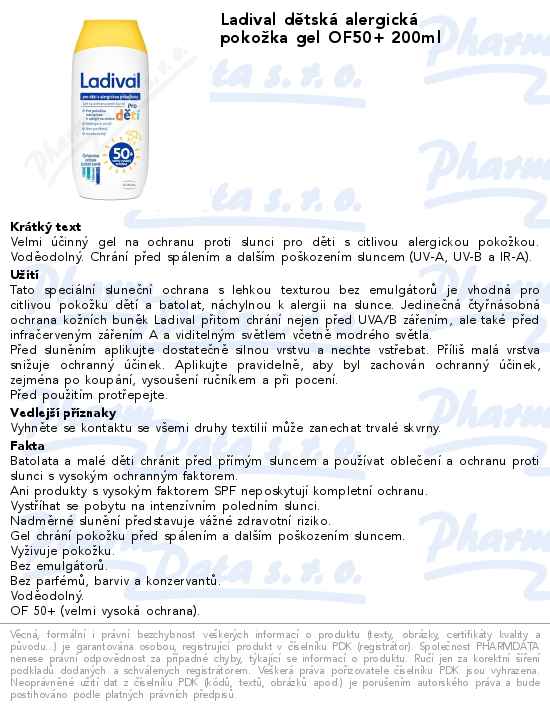 Ladival dětská alergická pokožka gel OF50+ 200ml