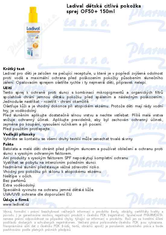 Ladival dětská citlivá pokožka sprej OF50+ 150ml