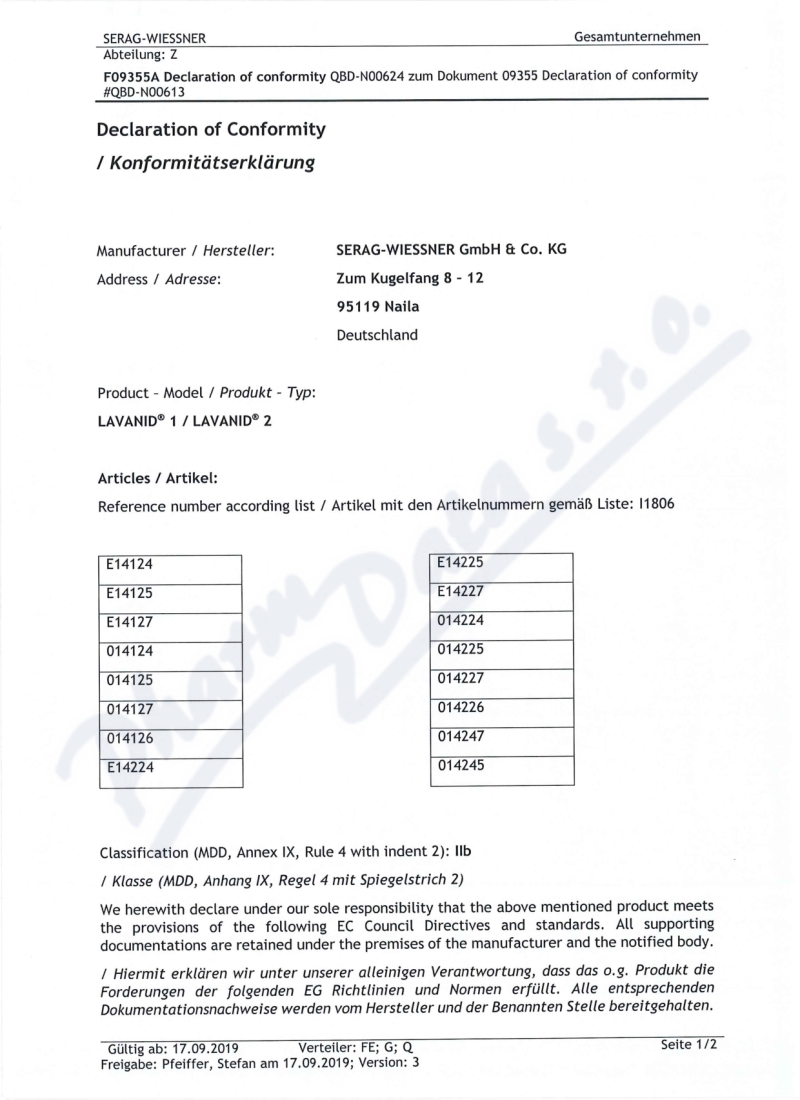 Výrobce: SERAG-WIESSNER GmbH & Co. KG, Nalia