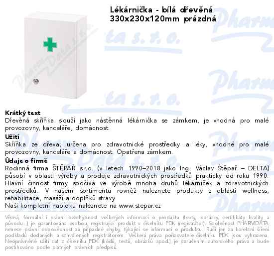 Lékárnička - bílá dřevěná 330x230x120mm prázdná