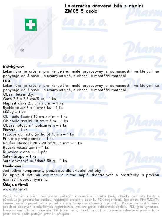 Lékárnička dřevěná bílá s náplní ZM05 5 osob