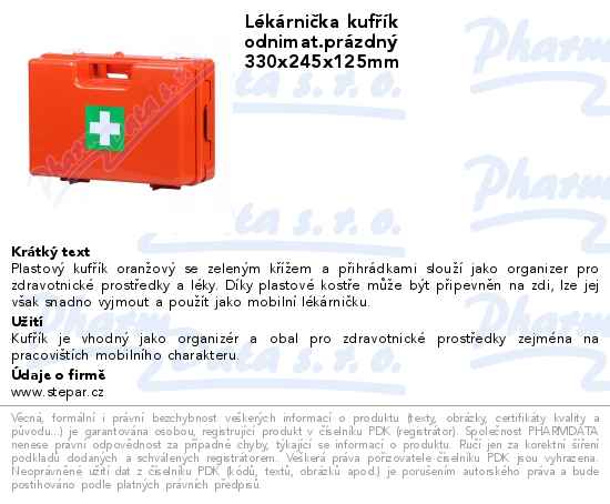 Lékárnička kufřík odnimat.prázdný 330x245x125mm