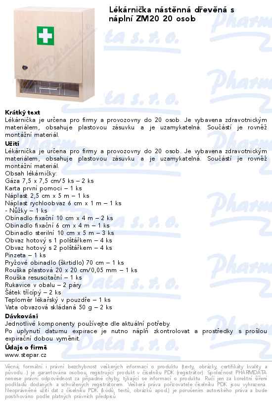 Lékárnička nástěnná dřevěná s náplní ZM20 20 osob