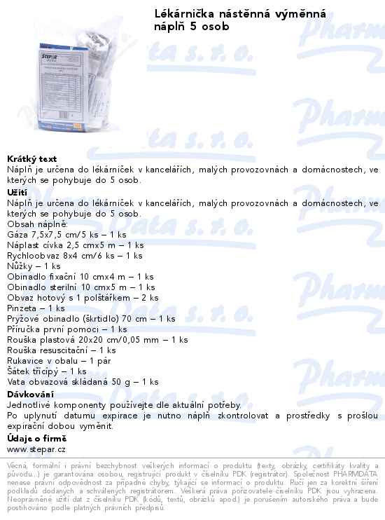 Lékárnička nástěnná výměnná náplň 5 osob