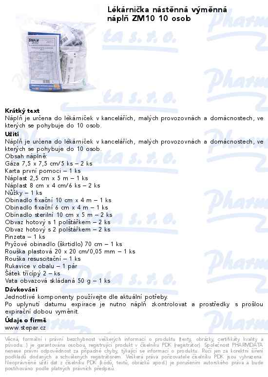 Lékárnička nástěnná výměnná náplň ZM10 10 osob