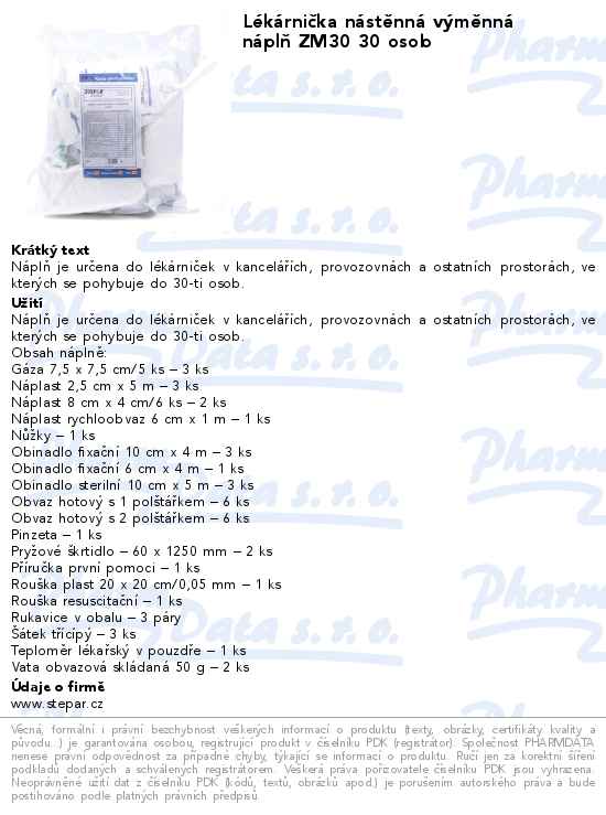 Lékárnička nástěnná výměnná náplň ZM30 30 osob