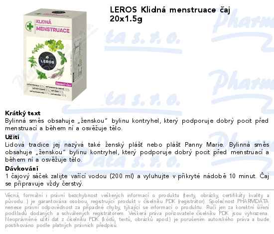 LEROS Klidná menstruace čaj 20x1.5g