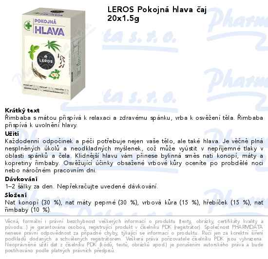 LEROS Pokojná hlava čaj 20x1.5g