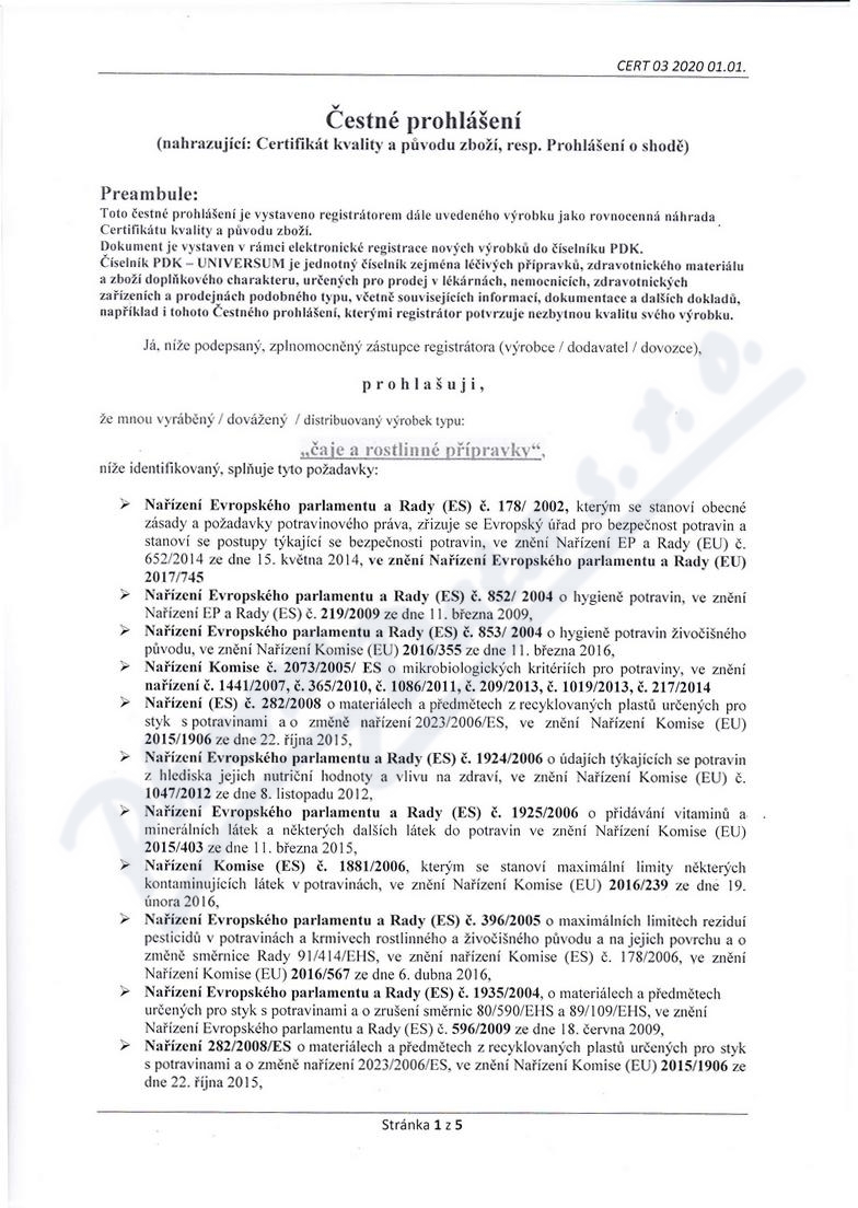 5 strany čestného prohlášení: strana 1, strana 2, strana 3, strana 4, strana 5,