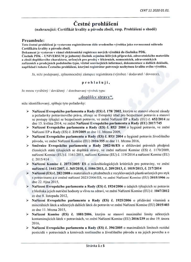 5 strany čestného prohlášení: strana 1, strana 2, strana 3, strana 4, strana 5,