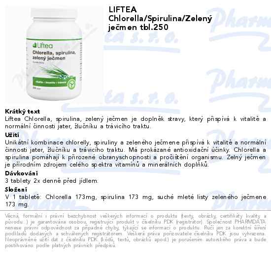 LIFTEA Chlorella/Spirulina/Zelený ječmen tbl.250