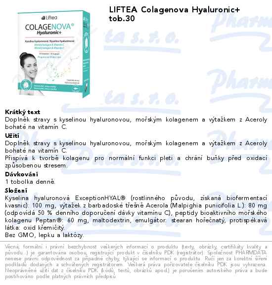 LIFTEA Colagenova Hyaluronic+ tob.30