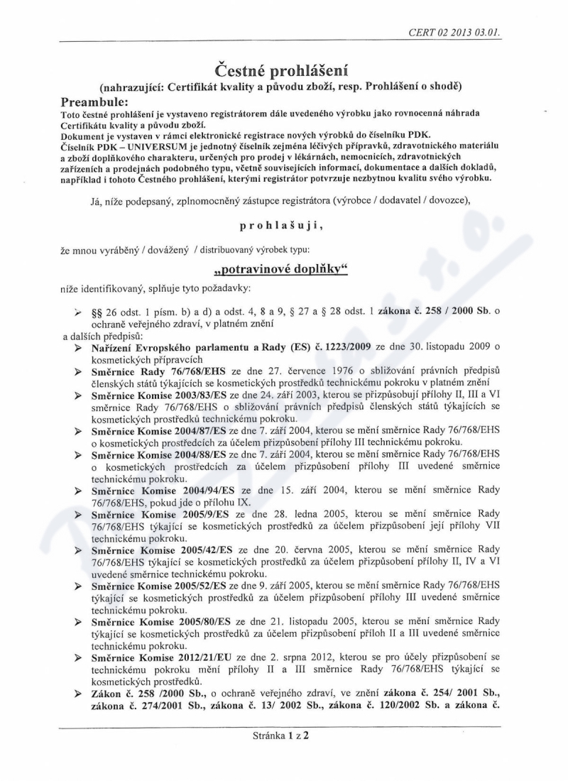 2 strany čestného prohlášení: strana 1, strana 2,