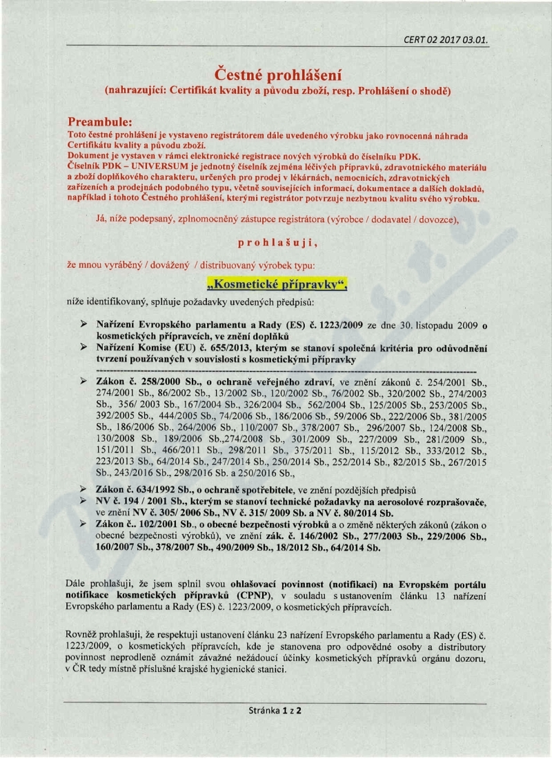 2 strany čestného prohlášení: strana 1, strana 2,
