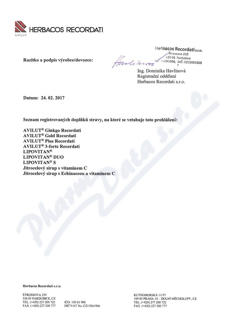 Výrobce: HERBACOS RECORDATI S.R.O., PARDUBICE