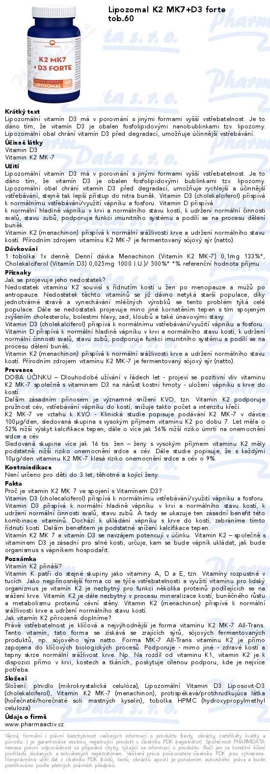 Lipozomal K2 MK7+D3 forte tob.60