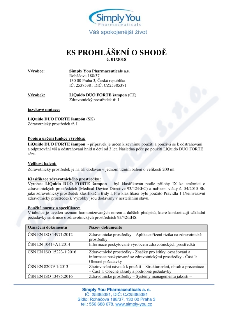 Výrobce: Simply You Pharmaceuticals a.s.