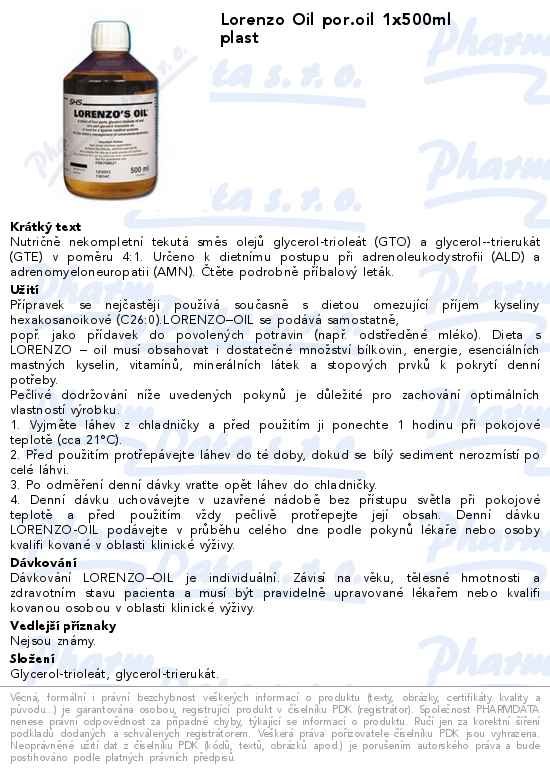 Lorenzo Oil por.oil 1x500ml plast