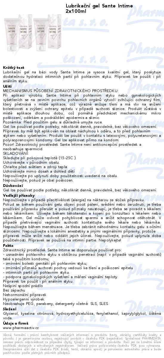 Lubrikační gel Sante Intime 2x100ml
