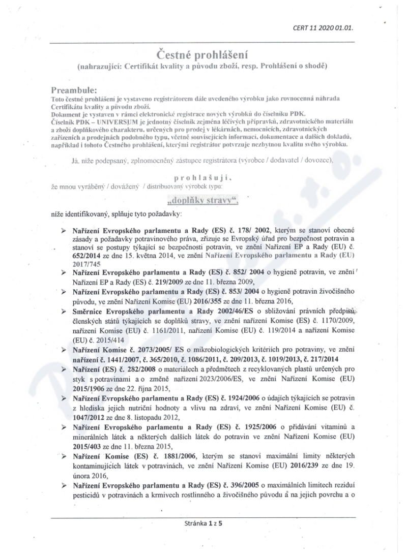 5 strany čestného prohlášení: strana 1, strana 2, strana 3, strana 4, strana 5,
