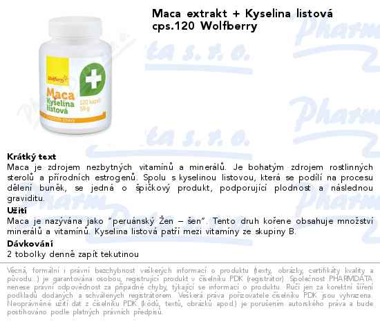 Maca extrakt + Kyselina listová cps.120 Wolfberry