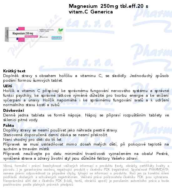 Magnesium 250mg tbl.eff.20 s vitam.C Generica