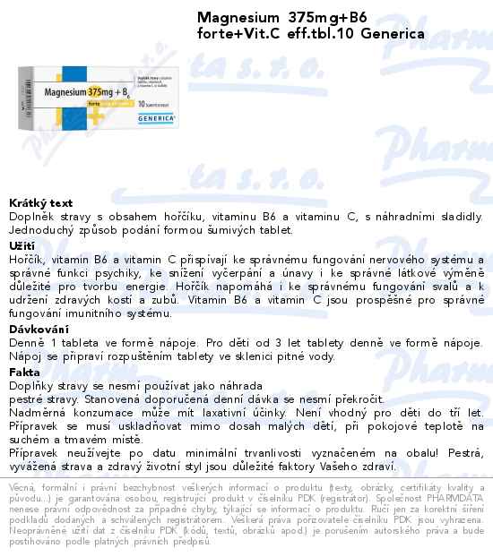 Magnesium 375mg+B6 forte+Vit.C eff.tbl.10 Generica