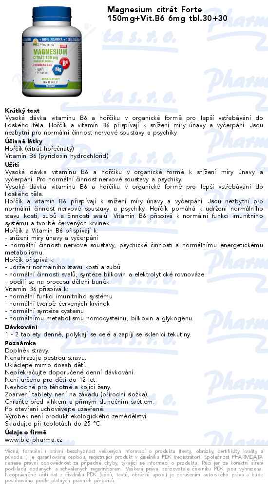 Magnesium citrát Forte 150mg+Vit.B6 6mg tbl.30+30