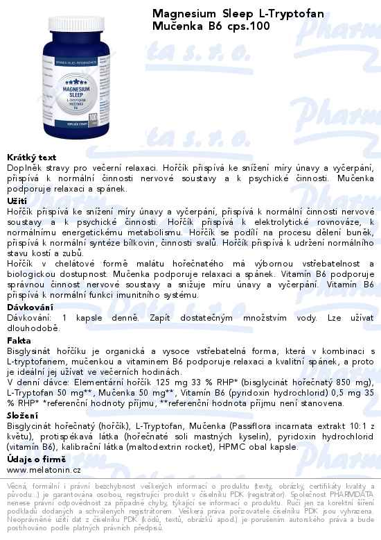 Magnesium Sleep L-Tryptofan Mučenka B6 cps.100