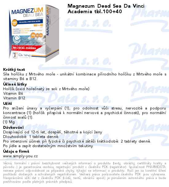 Magnezum Dead Sea Da Vinci Academia tbl.100+40
