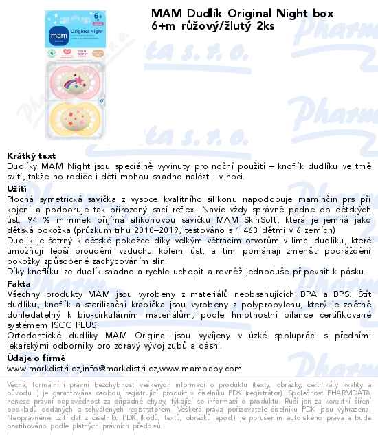 MAM Dudlík Original Night box 6+m růžový/žlutý 2ks