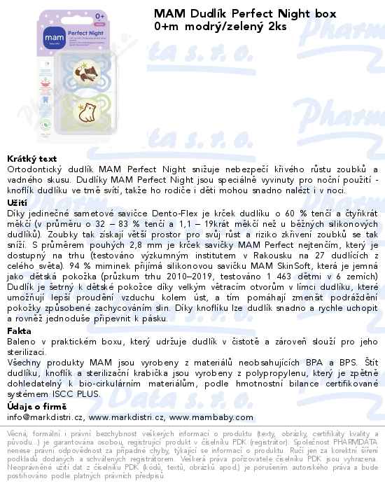 MAM Dudlík Perfect Night box 0+m modrý/zelený 2ks