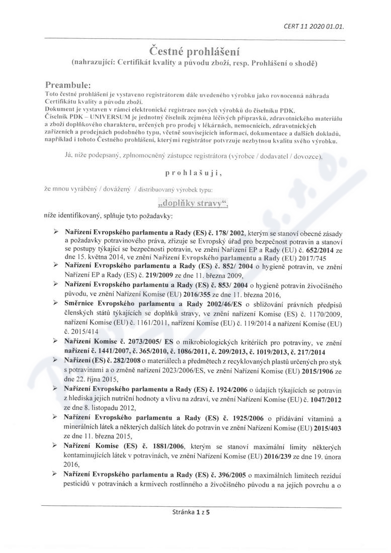 5 strany čestného prohlášení: strana 1, strana 2, strana 3, strana 4, strana 5,