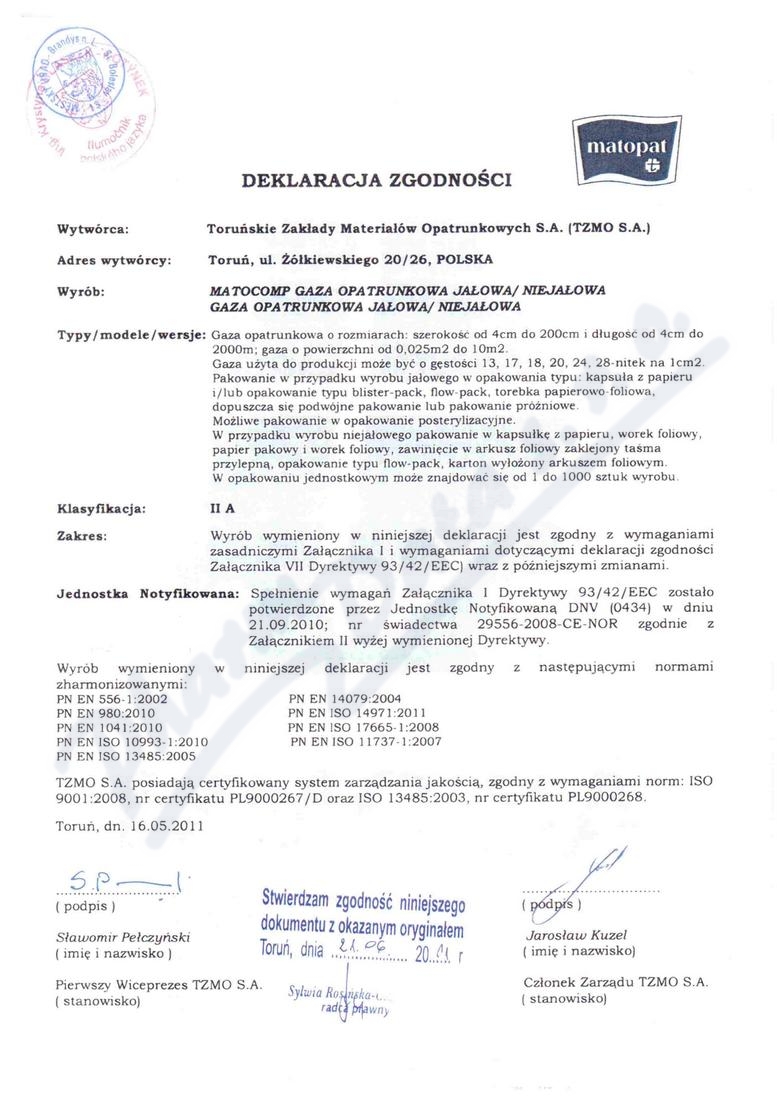 Výrobce: TORUNSKE ZAKLADY MATERIALOW OPATRUNKOVYCH S.A.