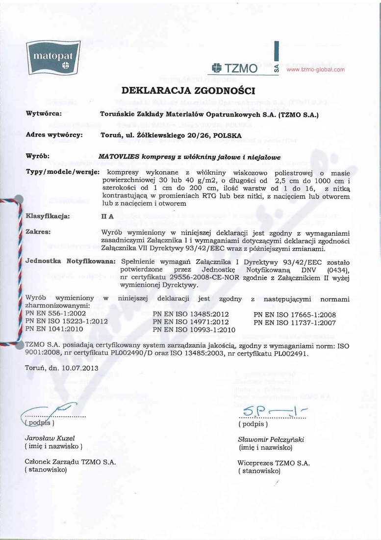 Výrobce: TORUNSKE ZAKLADY MATERIALOW OPATRUNKOVYCH S.A.