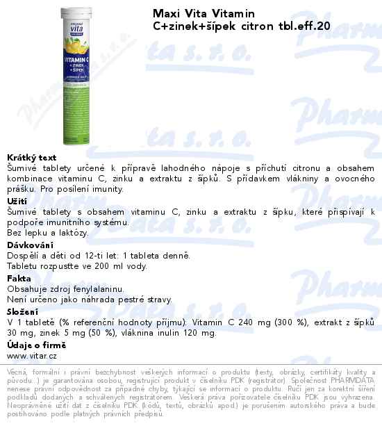 Maxi Vita Vitamin C+zinek+šípek citron tbl.eff.20