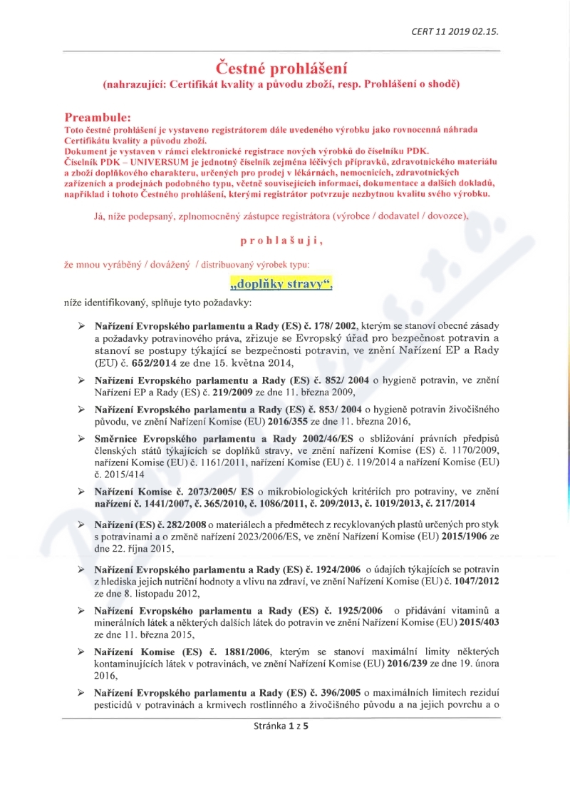5 strany čestného prohlášení: strana 1, strana 2, strana 3, strana 4, strana 5,