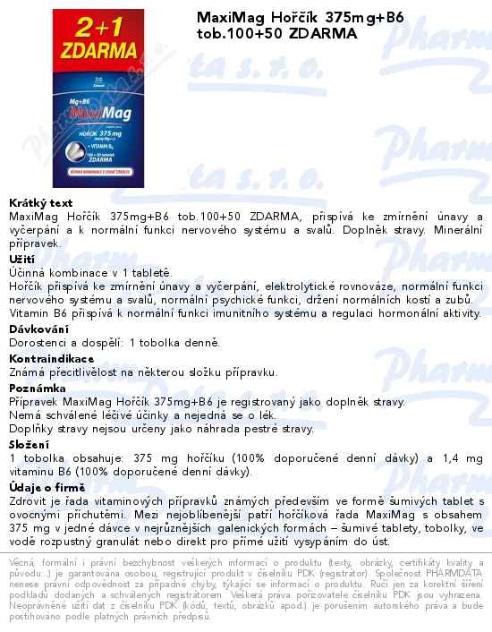 MaxiMag Hořčík 375mg+B6 tob.100+50 ZDARMA