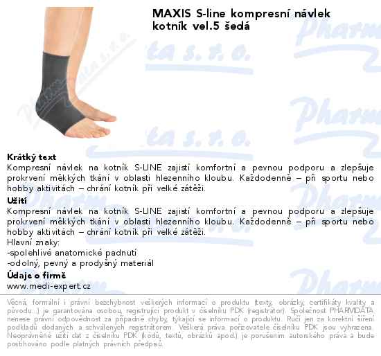 MAXIS S-line kompresní návlek kotník vel.5 šedá