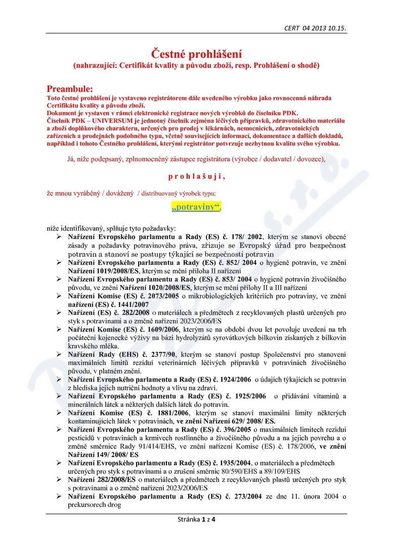 4 strany čestného prohlášení: strana 1, strana 2, strana 3, strana 4,