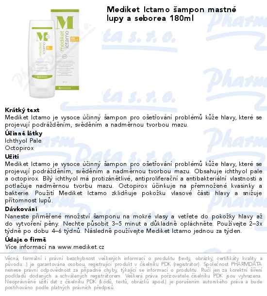Mediket Ictamo šampon mastné lupy a seborea 180ml
