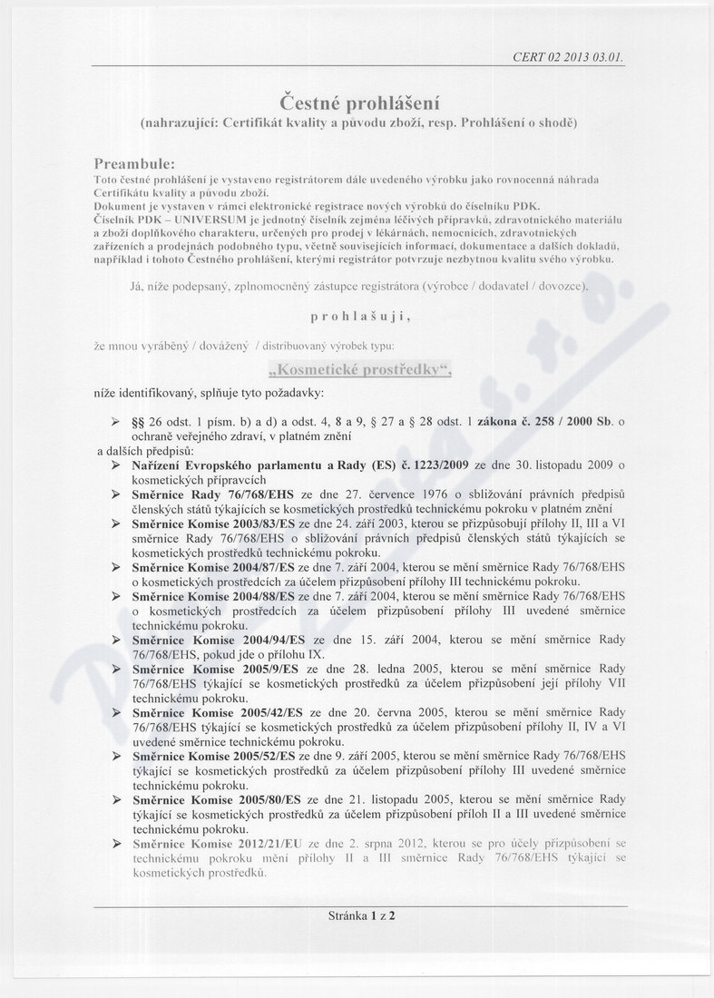 2 strany čestného prohlášení: strana 1, strana 2,