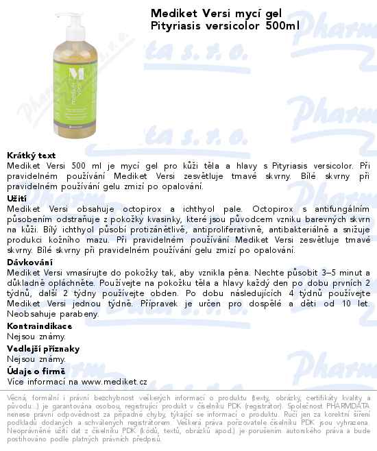Mediket Versi mycí gel Pityriasis versicolor 500ml