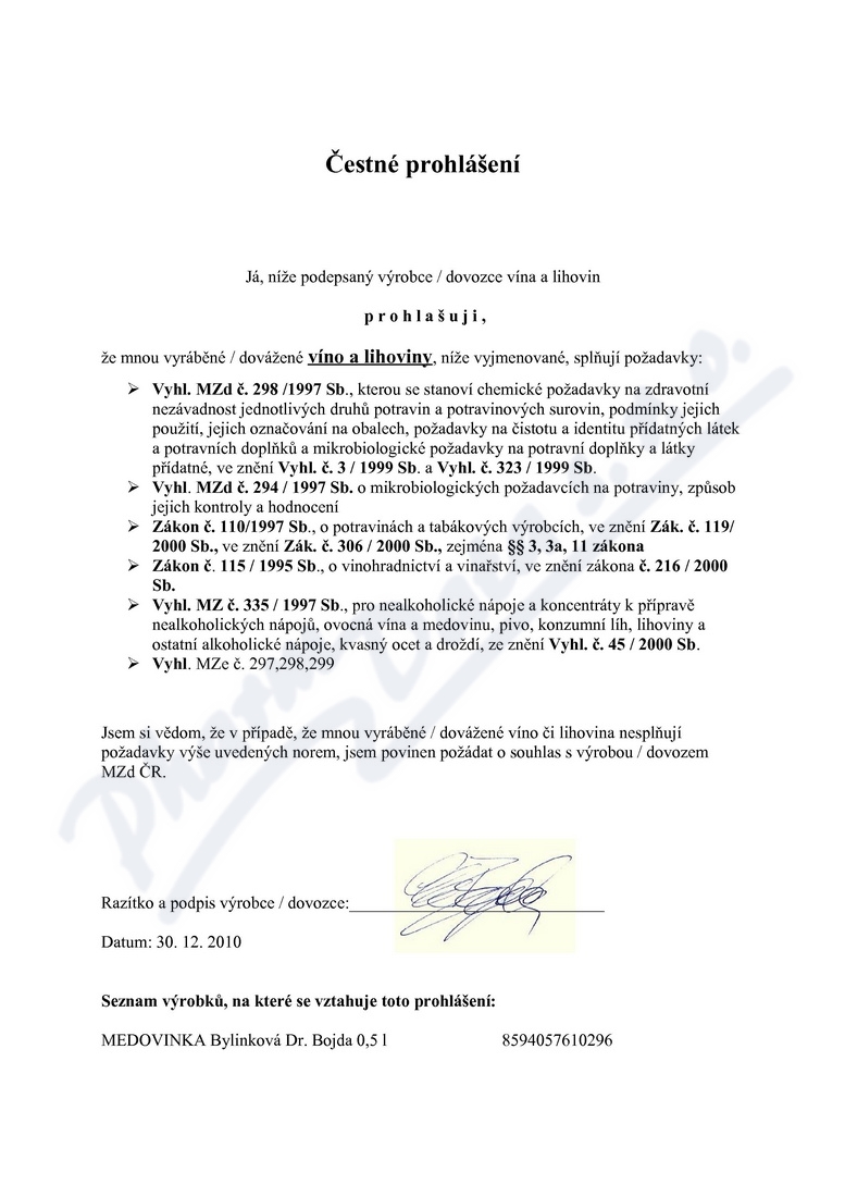 čestné prohlášení