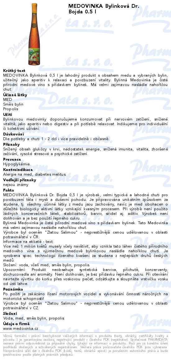 MEDOVINKA Bylinková Dr. Bojda 0.5 l