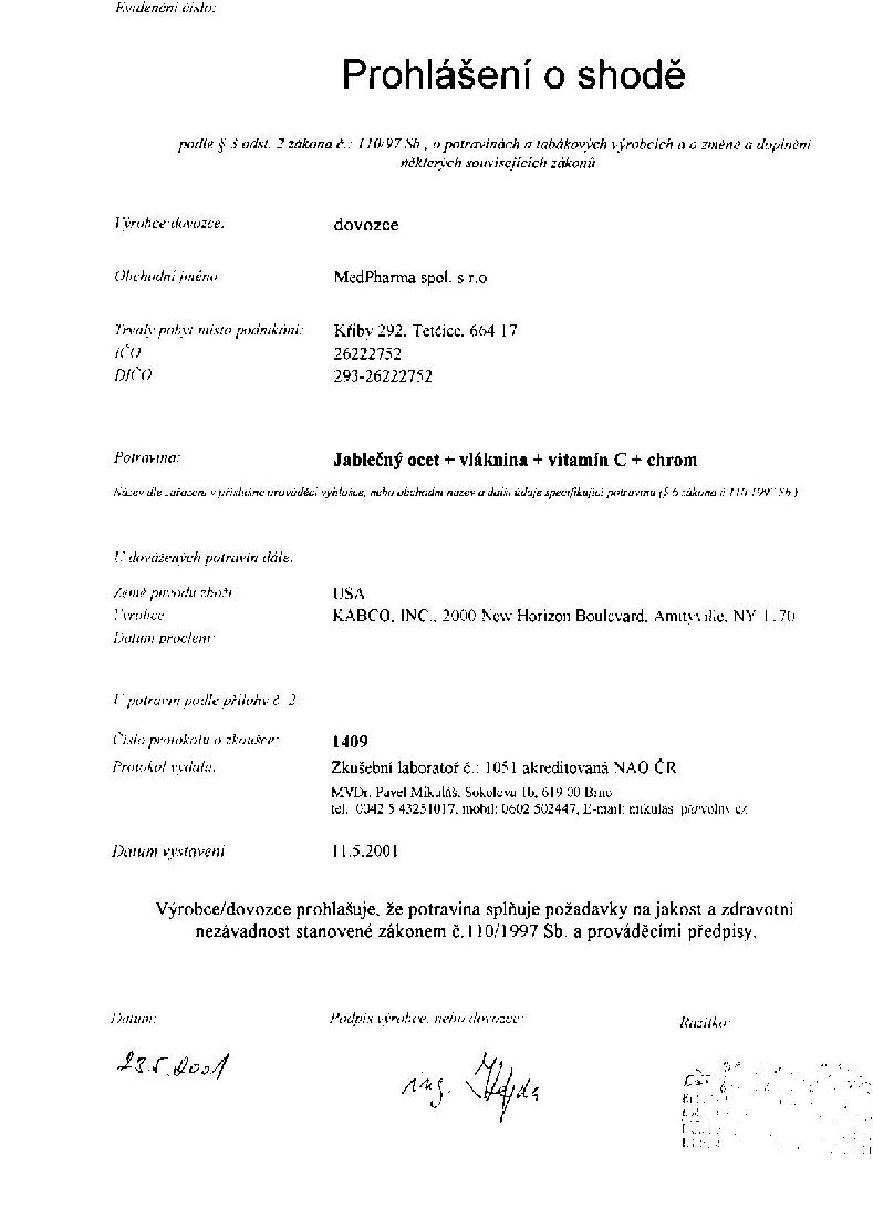 MedPharma Jablečný ocet+vlák.+vit.C+chrom tbl.107