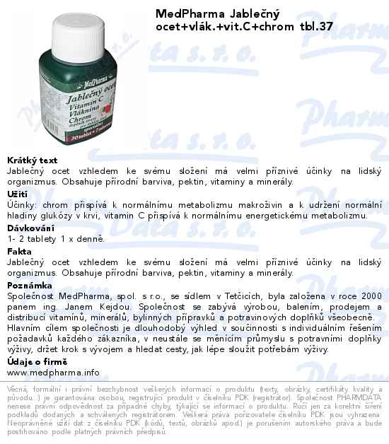 MedPharma Jablečný ocet+vlák.+vit.C+chrom tbl.37